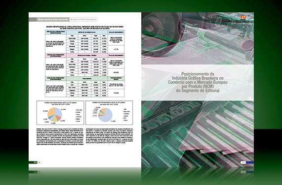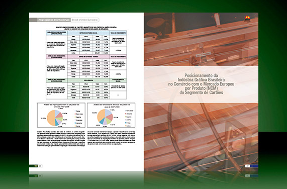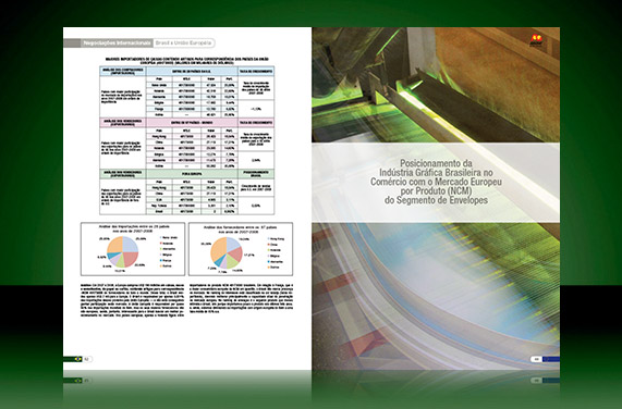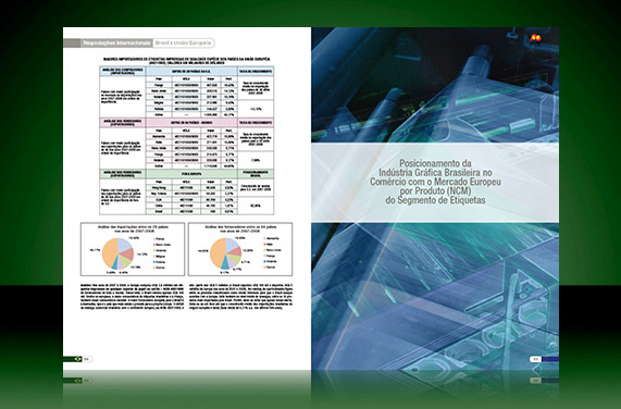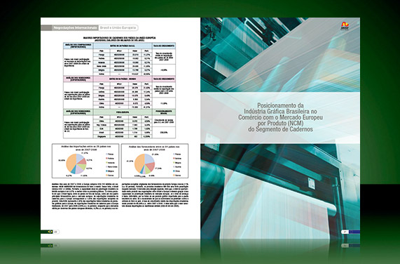 Folder produzido pela Abigraf Nacional em 2010, demonstrando o posicionamento da indústria gráfica brasileira no comércio com o mercado europeu. Projeto gráfico e edição de arte de Cesar Mangiacavalli.