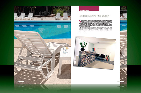 Folder institucional produzido pela RV&A Oficina de comunicações para o Sindicato da Indústria de Material Plástico do Estado de São Paulo. Pesquisa e redação de Ada Caperuto, Milena Prado Neves e Tainá Ianone. Projeto gráfico e direção de arte de Cesar Mangiacavalli.