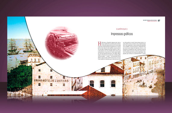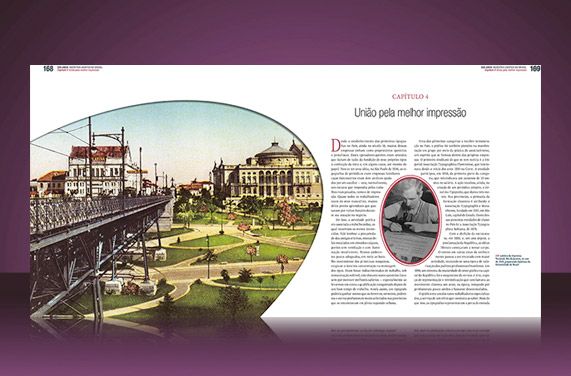 Editado pela Clemente e Gramani em 2008 para a Associação Brasileira da Indústria Gráfica, é o grande projeto dedicado a contar a história da indústria gráfica desde a invenção dos tipos móveis por Gutenberg às primeiras impressoras, das primeiras publicações, antes mesmo da chegada da família real ao Brasil em 1808, até a expansão dos meios de comunicação e da indústria gráfica até os dias de hoje. Um trabalho de fôlego, que exigiu uma grande pesquisa iconográfica e documental, que resultou em suas 240 páginas ricamente ilustradas. Texto final de Ricardo Viveiros. Projeto gráfico, direção de arte e ilustrações de Cesar Mangiacavalli.