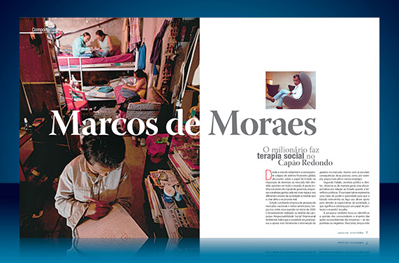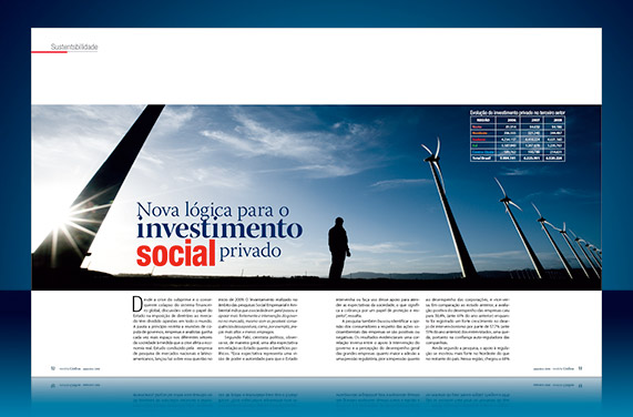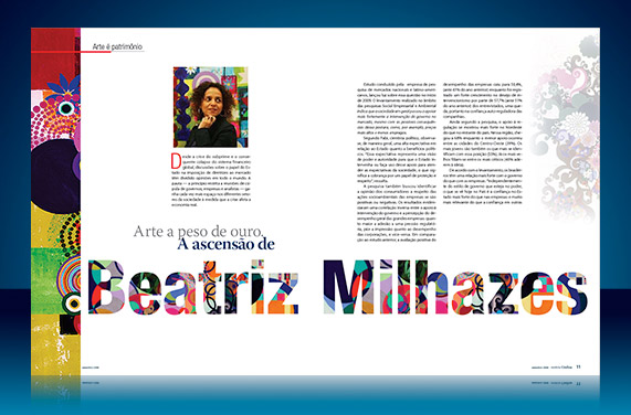 Esse é o layout de um projeto gráfico para uma publicação de caráter variado destinada a um público Top. Matérias sobre arte e cultura, entremeadas com entrevistas com pessoas que decidem os rumos da economia e assuntos de negócios e tendências.