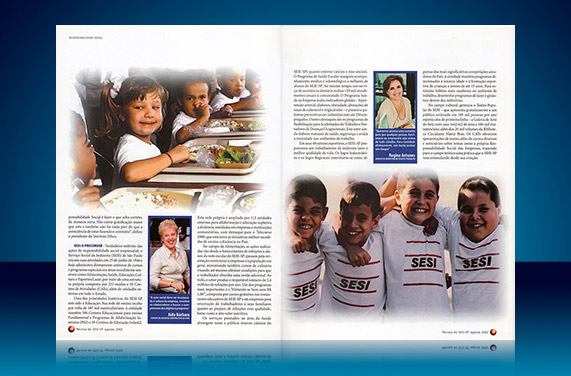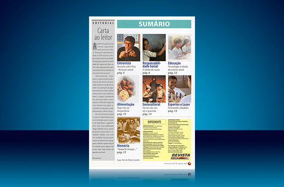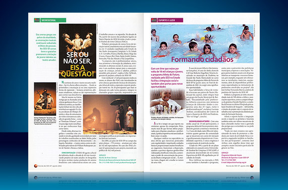 Projeto gráfico de uma nova revista, criado por Cesar Mangiacavalli para a RV&A em agosto de 2002. A publicação destinava-se a registrar as ações do SESI São Paulo nas áreas de saúde, alimentação, cultura e lazer.